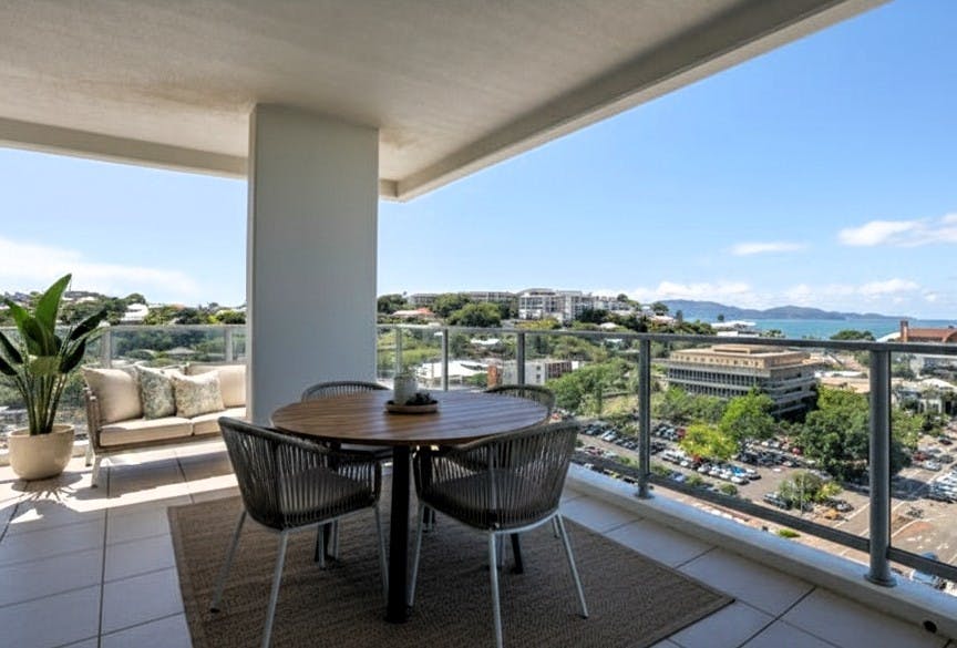 Elevated on the 12th floor with sweeping views, this spacious three-bedroom apartment offers stylish city living with two bathrooms, a large balcony off the lounge, private balcony off the main bedroom, pool access, and secure garage parking all in the heart of Townsville City.3 generous bedrooms